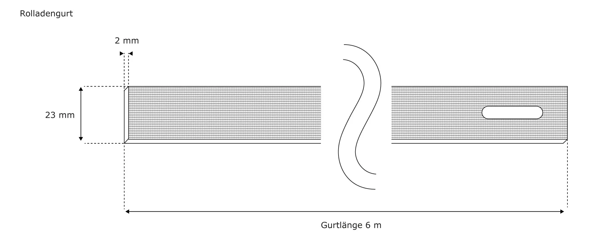Du erhältst eine 6,0 m Rollladengurtrolle mit einer Gurtbreite von 23 mm. Das Gurtbandende wurde für dich bereits vorgelocht / vorgeschlitzt, um eine einfache und schnelle Montage am Gurtwickler und der Gurtscheibe zu gewährleisten.