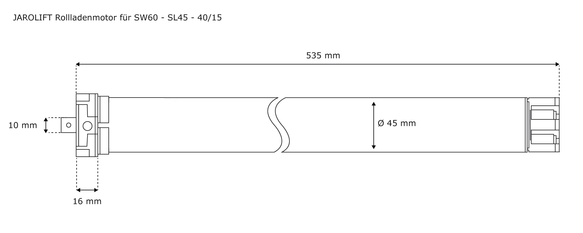 | Produktbezeichnung: | Rollladenmotor SL | SL45 40/15 (40 Nm / SW60) |