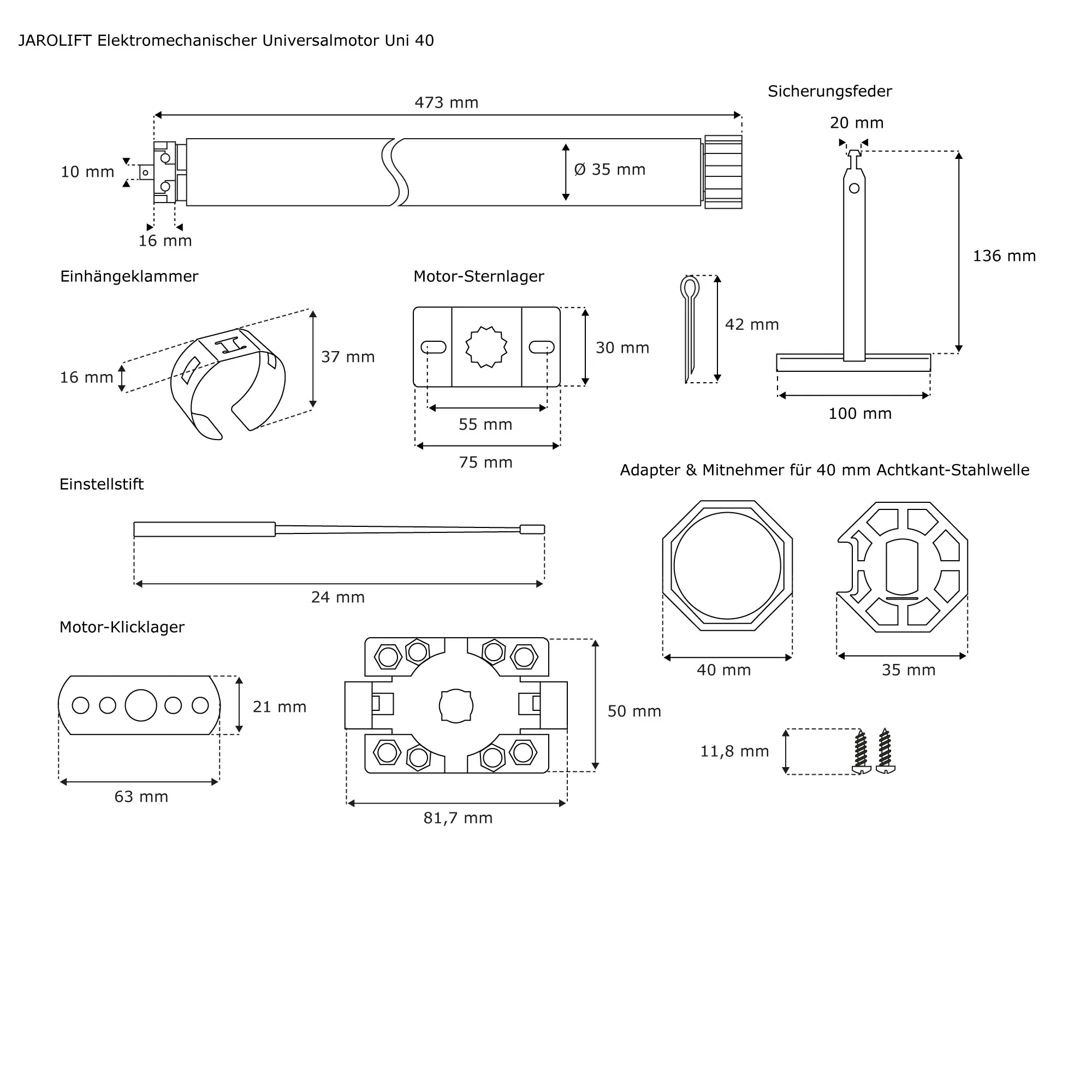 | Produktbezeichnung: | Rollladenmotor Universal | UNI40 (13 Nm / SW40) + Sevenlogic Comfort + Vorbau-Wellenset 4 |