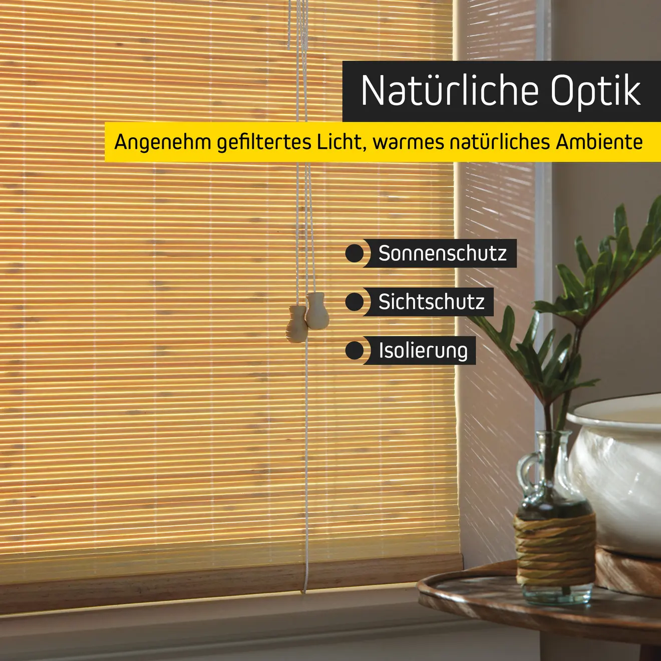 Bambus-Rollos sind ein reines Naturprodukt. Die einzelnen Stäbchen können bezüglich Form, Farbe und Beschaffenheit leicht unterschiedlich sein, so dass kein Produkt vollständig dem anderen gleicht. Auch die UV-Stabilität beziehungsweise die Lichtbeständigkeit kann leicht variieren. Eine Reklamation ist deshalb diesbezüglich nicht möglich. Bitte beachte, dass dieses Produkt nur für die Anwendung im Innenbereich und nicht für Feuchträume geeignet ist.