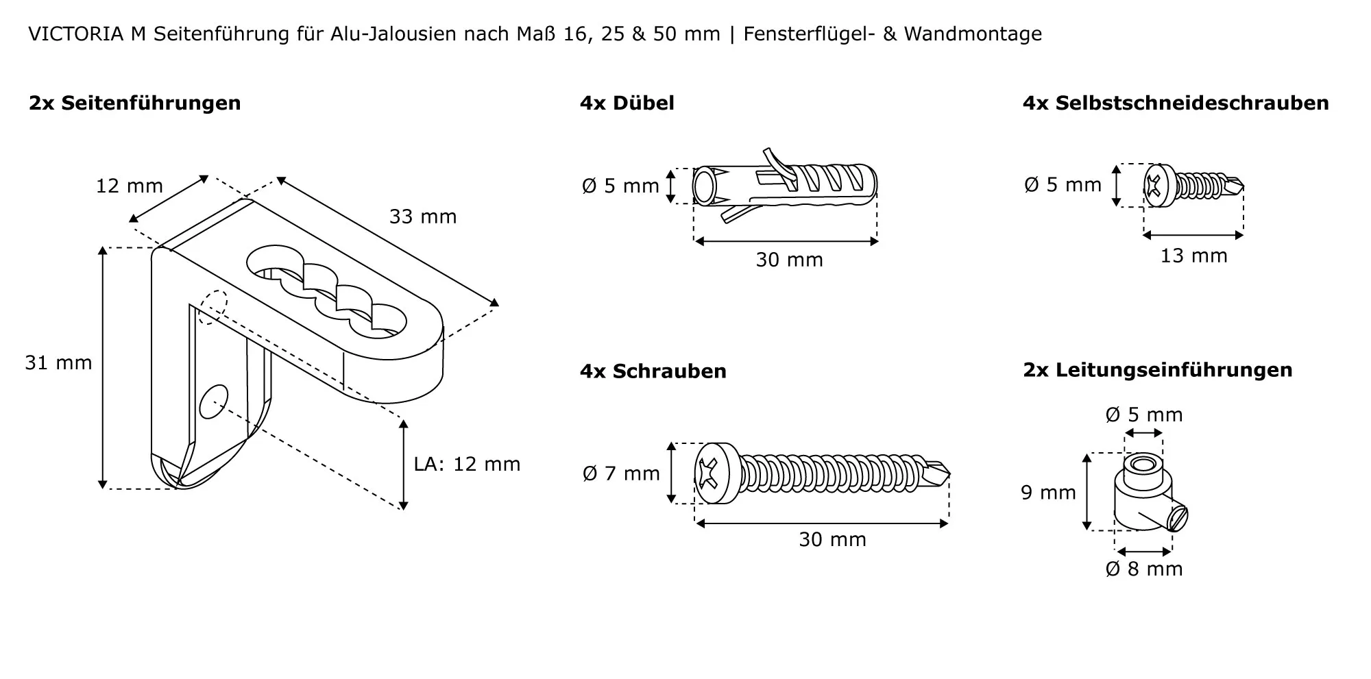 | Produktbezeichnung: | Seitenführung für Jalousien nach Maß | 16, 25 & 50 mm / Fensterflügel- & Wandmontage |