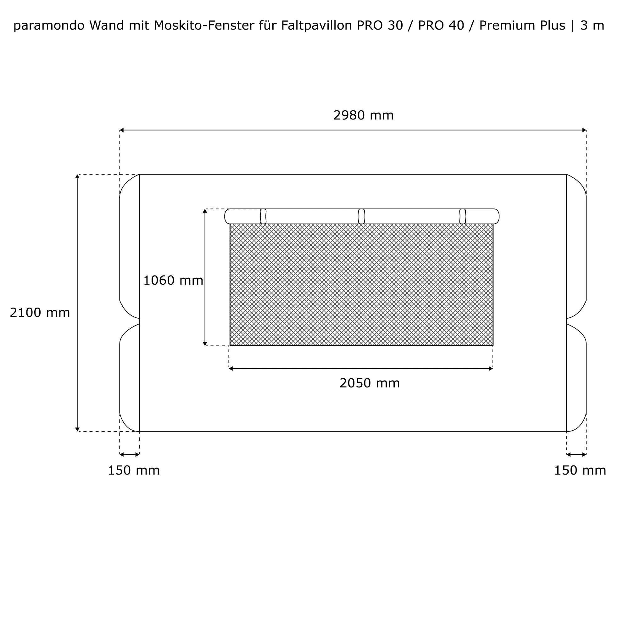 1x paramondo Seitenwand für Faltpavillon PRO / Premium Plus | Wand mit Moskitonetz-Fenster, PRO30 / PRO40 / Premium Plus
