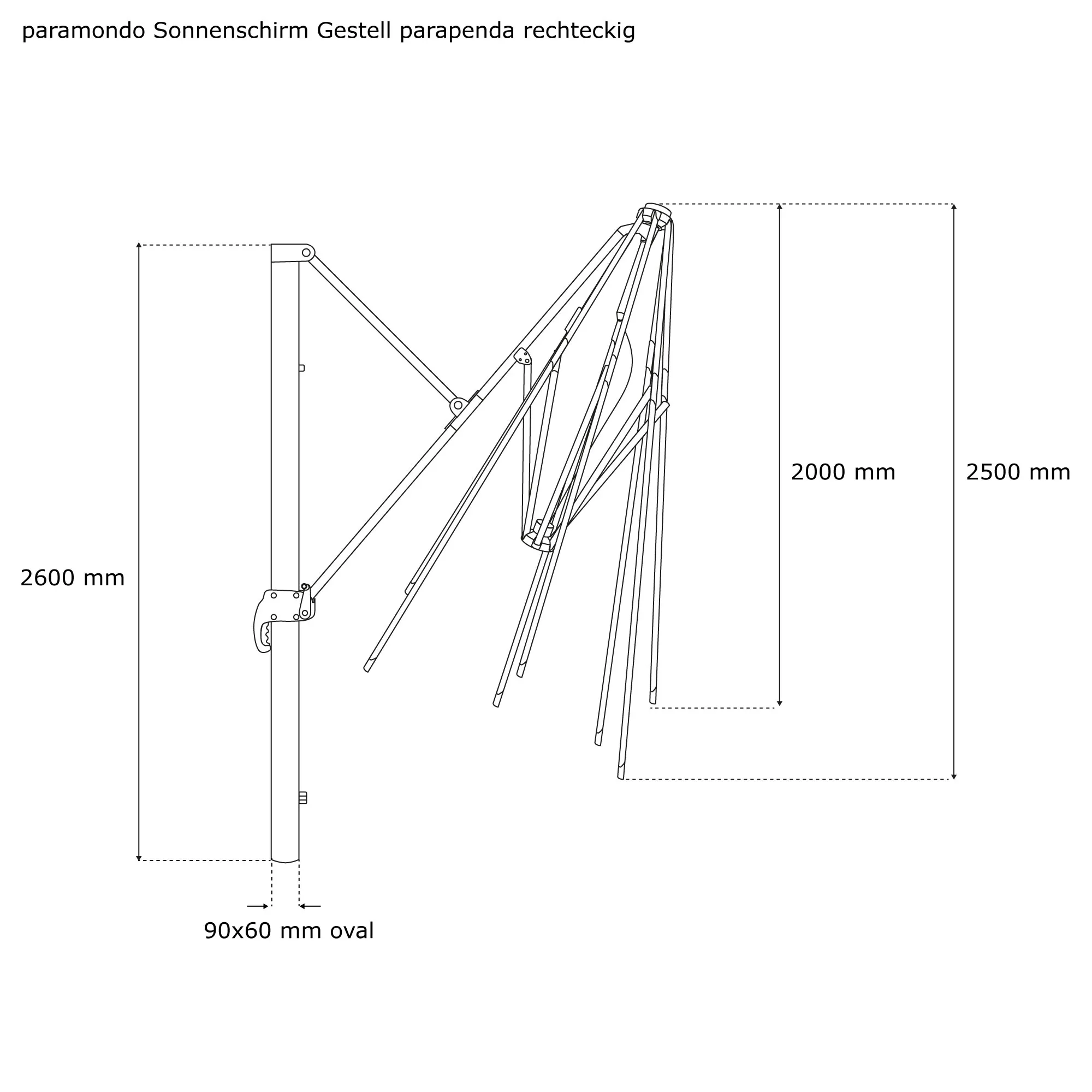 | Produktbezeichnung: | Sonnenschirm Gestell für parapenda Ampelschirm | 4 x 3 m, rechteckig, anthrazit + Standkreuz |