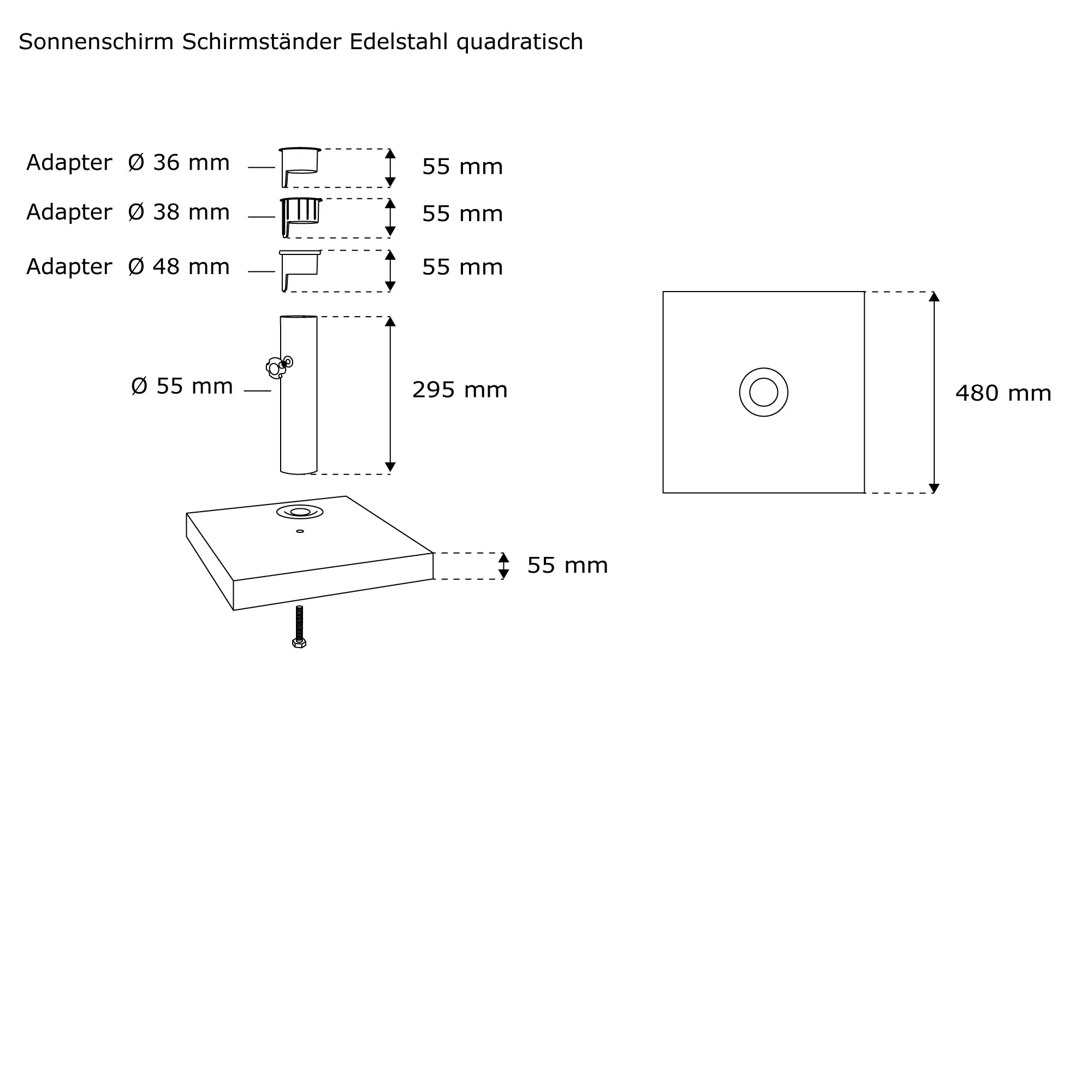| Produktbezeichnung: | Sonnenschirm Schirmständer Edelstahl | quadratisch |