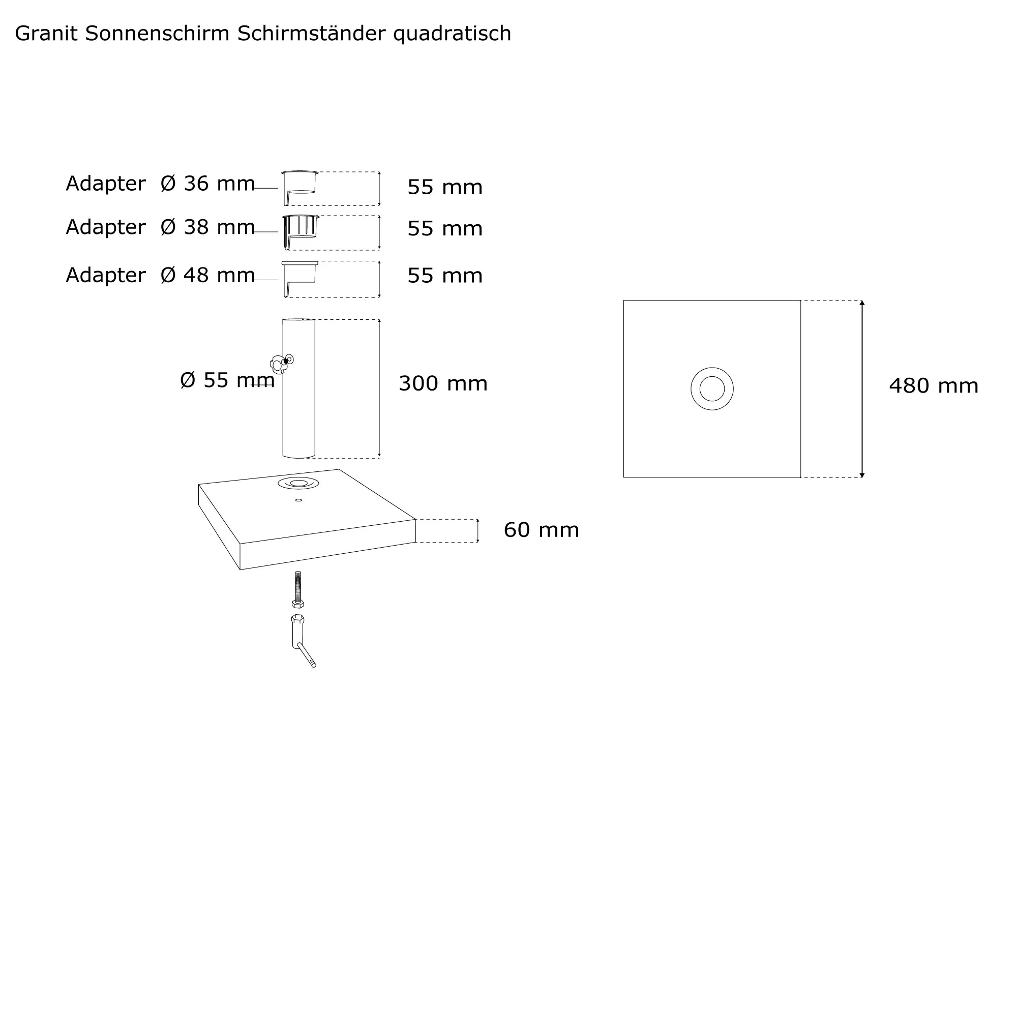 | Produktbezeichnung: | Sonnenschirm Schirmständer Granit | quadratisch |