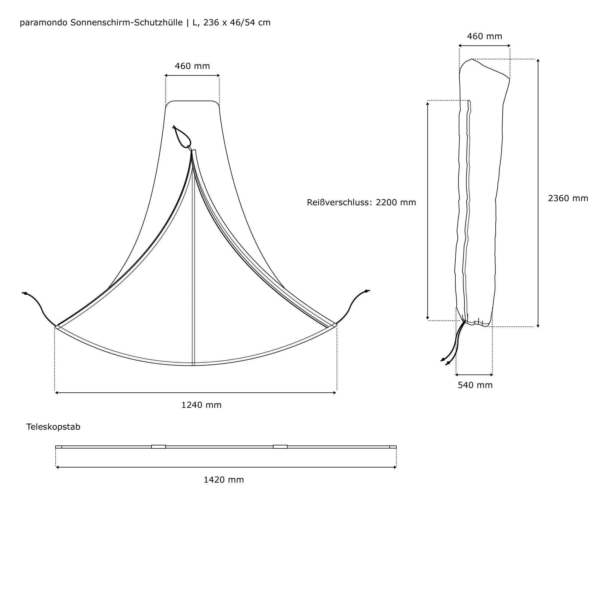 | Produktbezeichnung: | Sonnenschirm-Schutzhülle | L, 236 x 46/54 cm |
