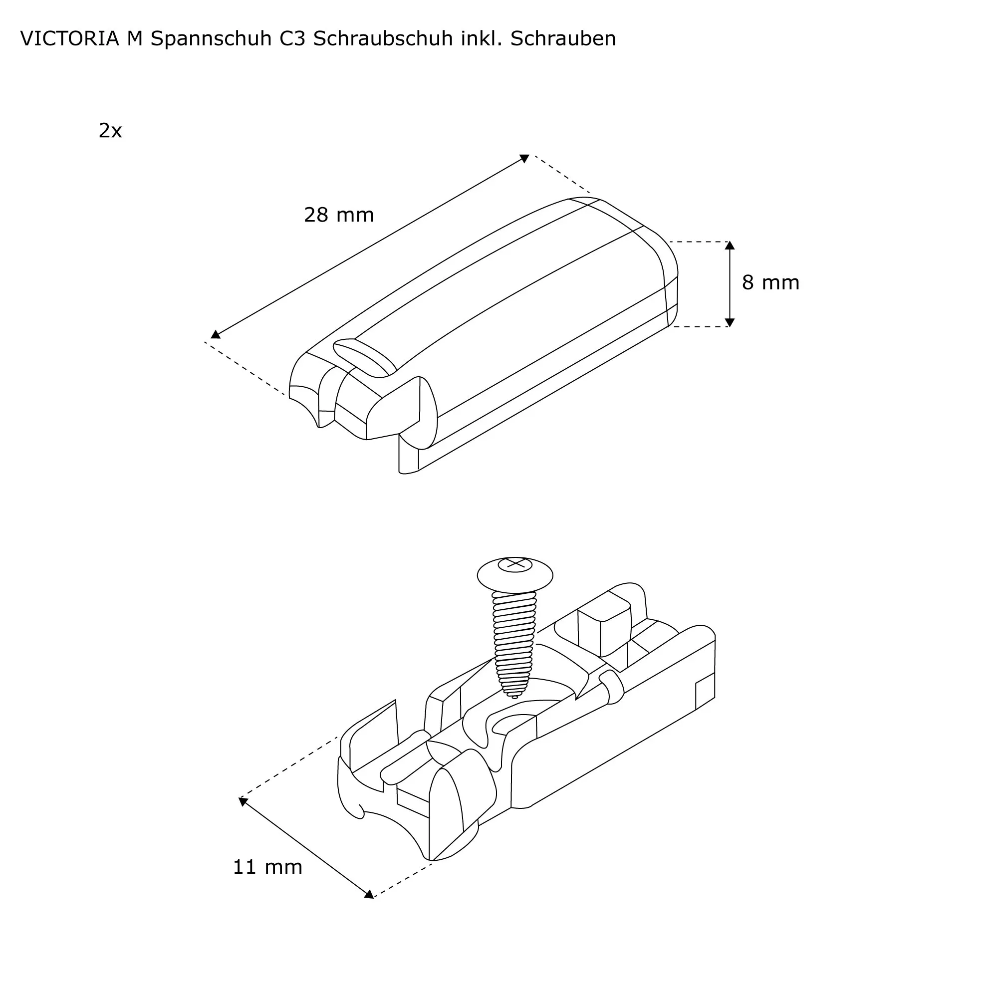 | Produktbezeichnung: | Spannschuh C3 - Schraubschuh inkl. Schrauben | weiß, 2 Stück |