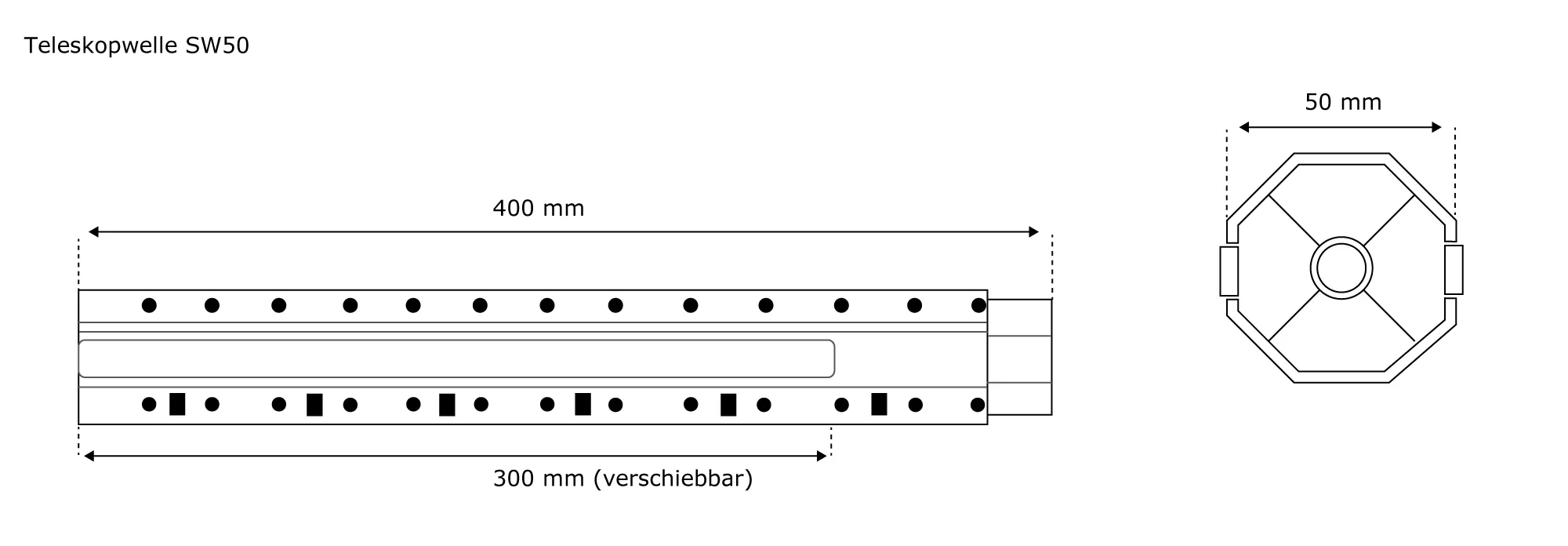 | Produktbezeichnung: | Teleskopwelle für Rollladenwelle 8-Kant | SW50, Achsstift innenliegend |