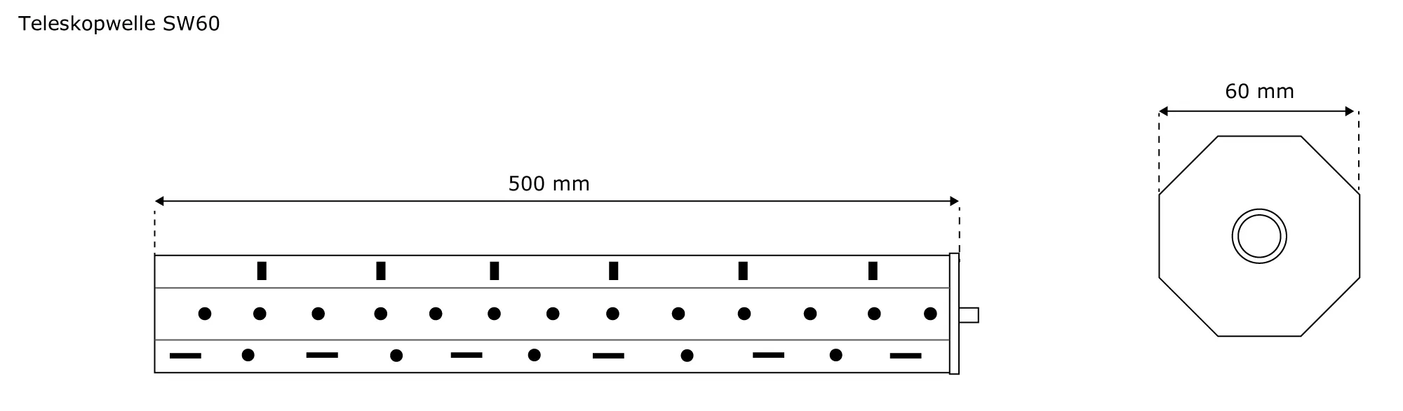 | Produktbezeichnung: | Teleskopwelle für Rollladenwelle 8-Kant | SW60, Achsstift außenliegend |