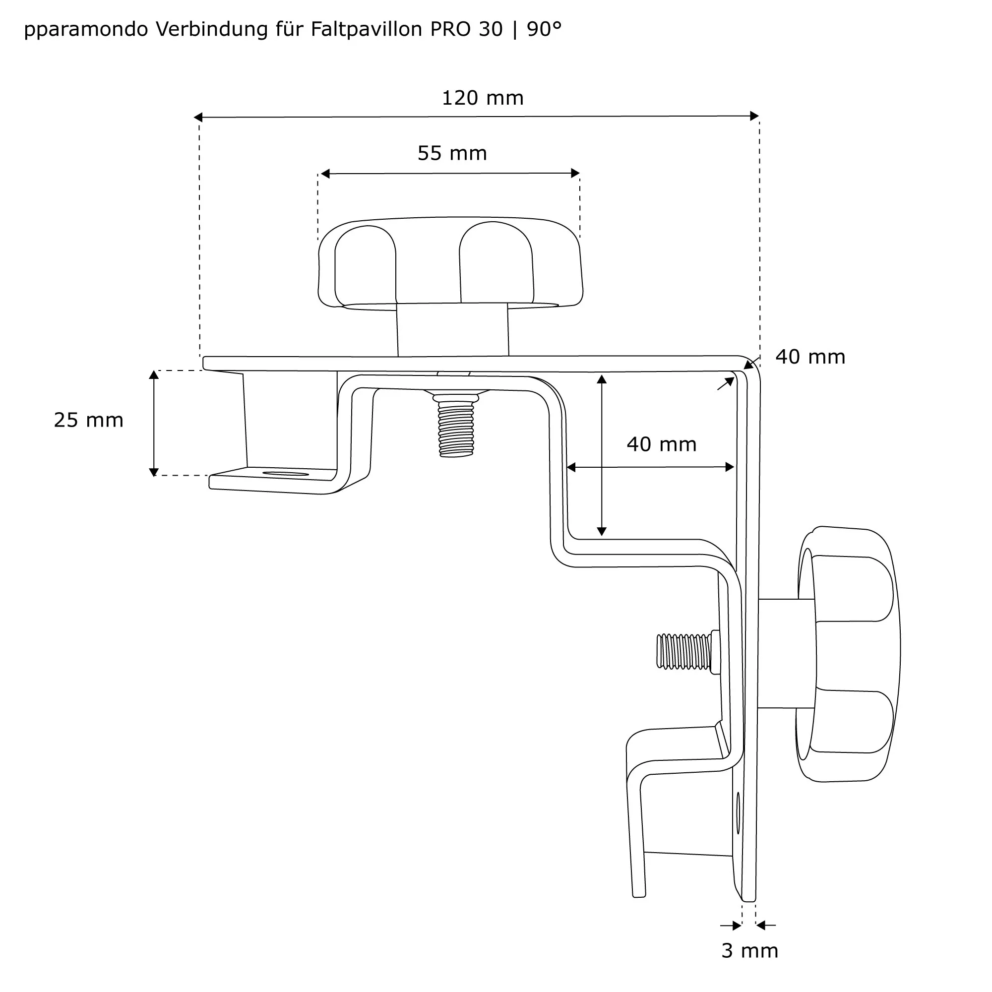 | Produktbezeichnung: | Verbindung für Faltpavillon PRO / Premium Plus | PRO30, 90° |
