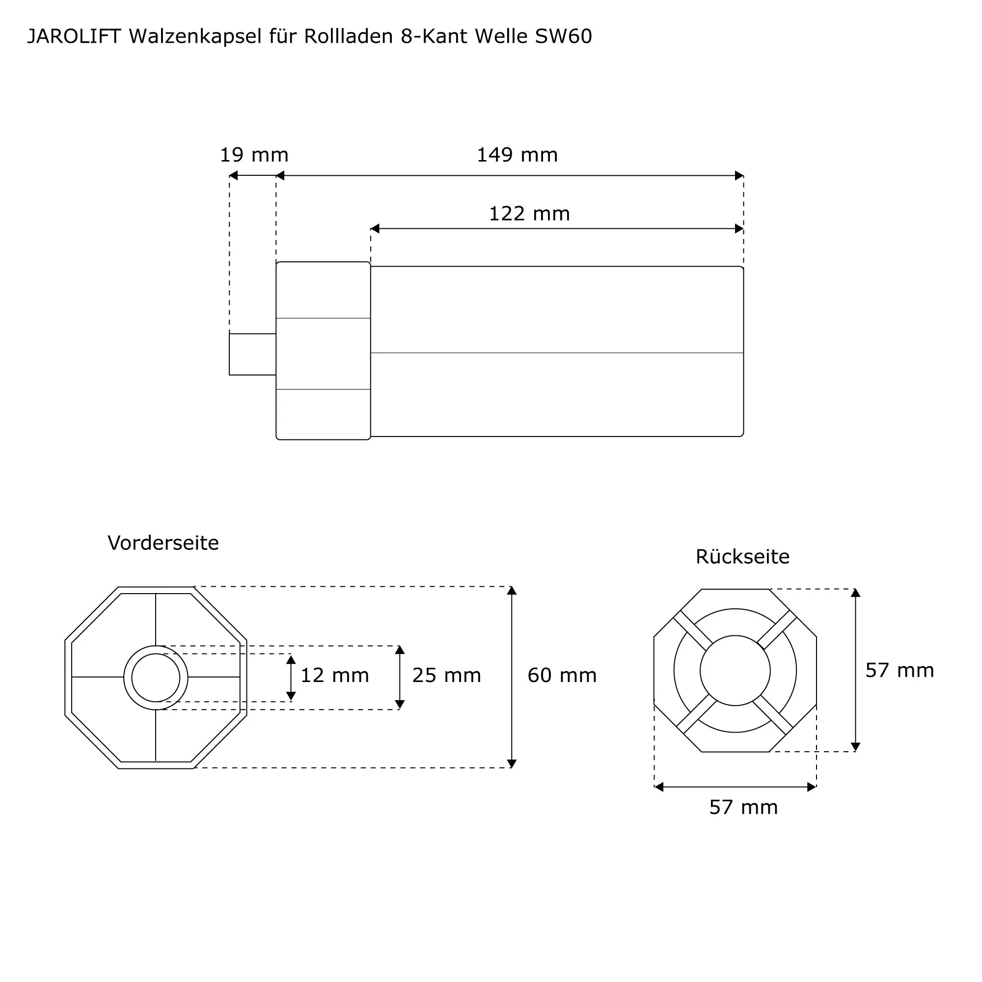 | Produktbezeichnung: | Walzenkapsel für Rollladenwelle 8-Kant | SW60 / außenl. Achsstift |
