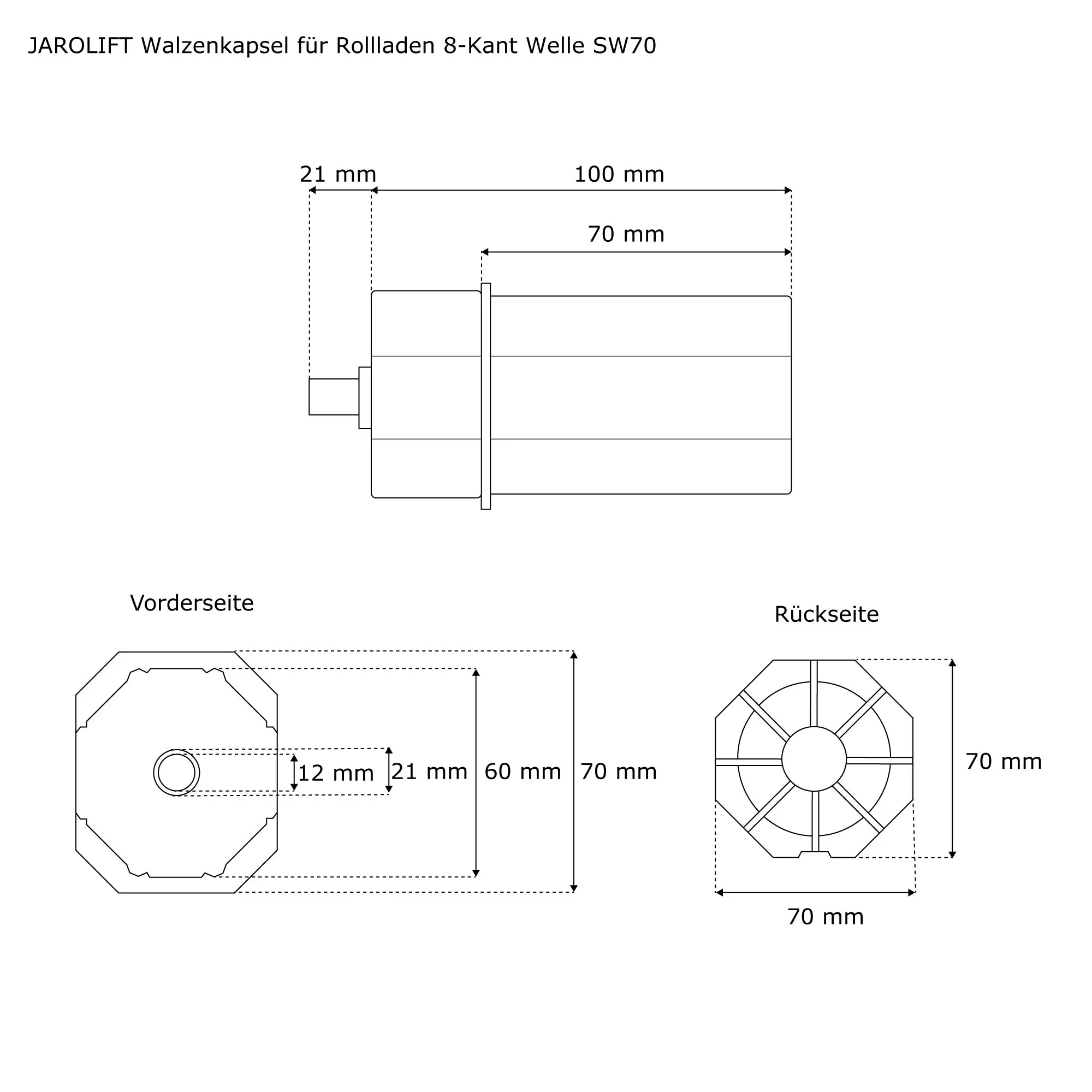 | Produktbezeichnung: | Walzenkapsel für Rollladenwelle 8-Kant | SW70 / außenl. Achsstift |