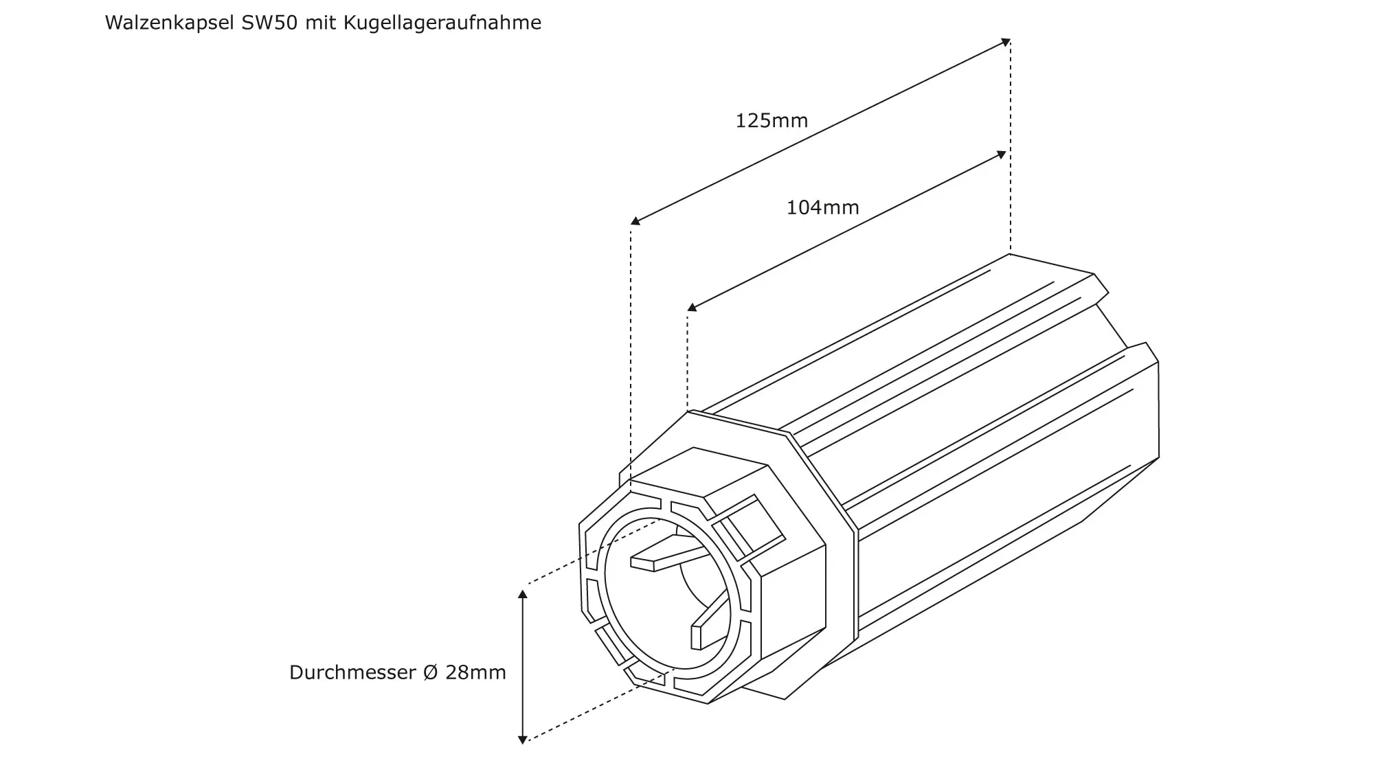 | Produktbezeichnung: | Walzenkapsel mit Kugellageraufnahme 28 mm für Rollladenwelle 8-Kant | SW50 |