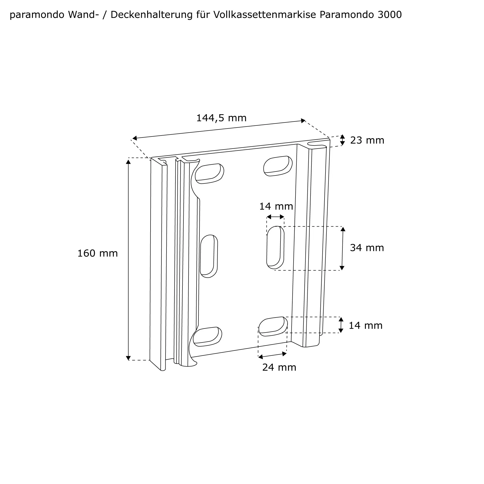 | Produktbezeichnung: | Wand- / Deckenhalterung für Vollkassettenmarkise Paramondo 3000 | grau aluminium |