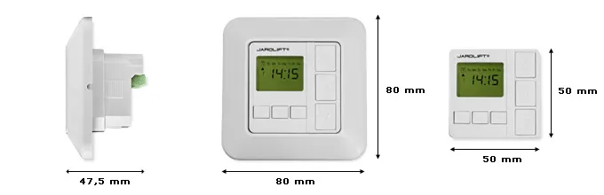 Der 1-Kanal Funkempfänger-Timer TDRRT-01W verbindet zwei verschiedene Steuerungsmöglichkeiten in einem Gerät. Zum einen kann die Bedienung per Funk, über separat erhältliche Hand- oder Wandsender der JAROLIFT®™ TDR-Serie, erfolgen. Zum anderen kann der angeschlossene Rollladenmotor direkt über die Fronttasten des TDRRT-01W angesprochen werden. Somit kann der Rollladen auch bei verlegtem Handsender schnell und komfortabel vor Ort gefahren werden. Die Zeitsteuerung ist direkt im Funkempfänger integriert und alle programmierten Fahrbefehle werden kabelgebunden an den Motor übertragen. Hierdurch ist die Zeitsteuerung nicht mehr von der Position oder der Reichweite eines Funk-Senders mit Zeitschaltuhr abhängig.