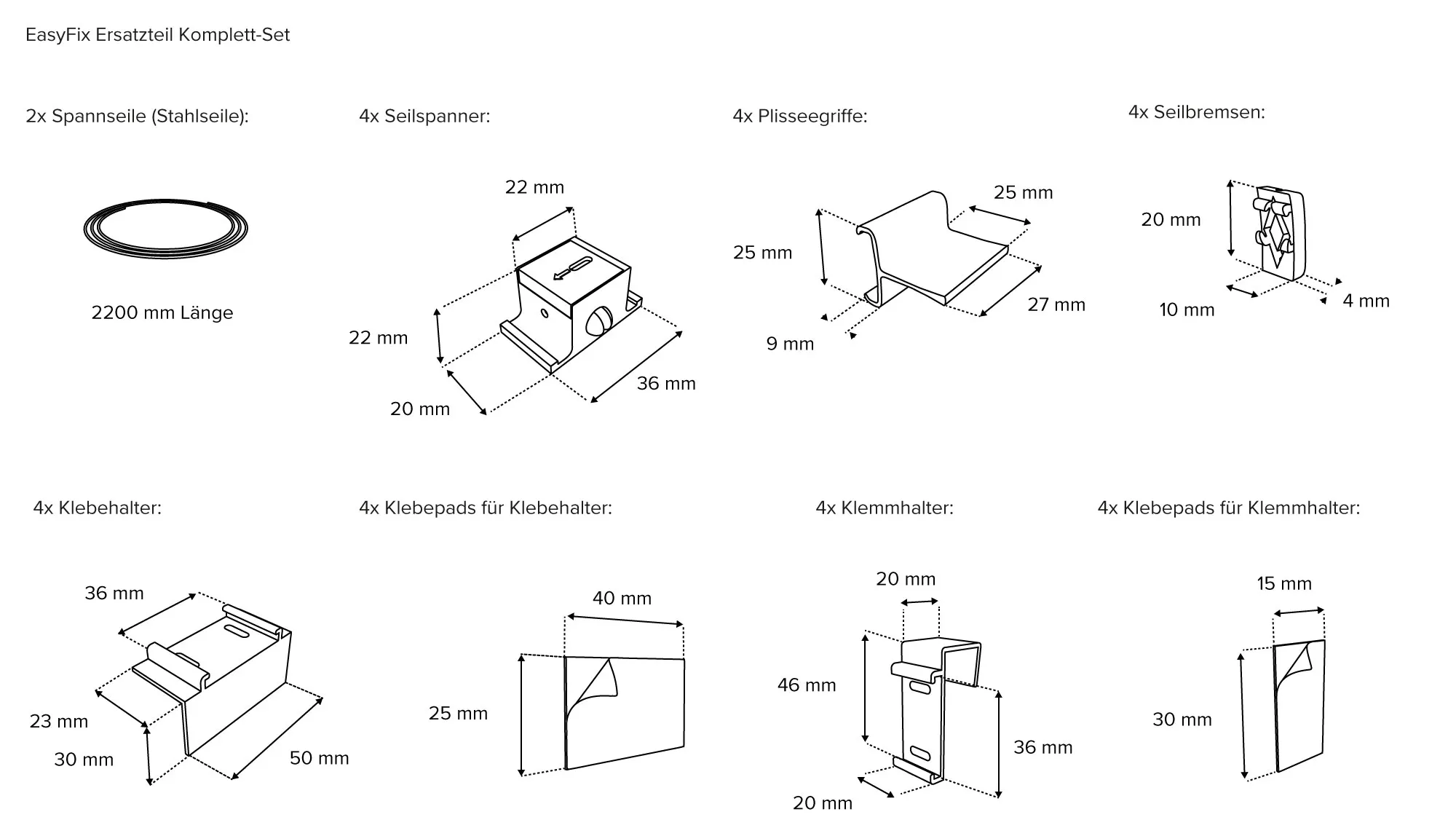 | Produktbezeichnung: | Zubehör & Ersatzteil Komplett-Set für EasyFix Plissee |