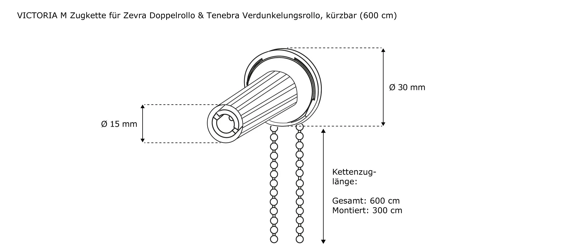 | Produktbezeichnung: | Zugkette für Zevra / Eco Doppelrollo & Tenebra / Eco Rollo | 600 cm, kürzbar, weiß |
